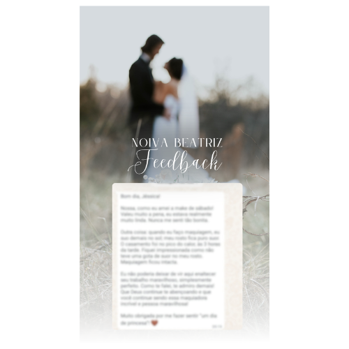 Após um atendimento impecável, tenho certeza que você irá receber um feedback incrível. E chega de colocar o feedback no seu story, sem graça e personalidade. Você precisa chamar atenção das outras noivas que irão fechar com você!