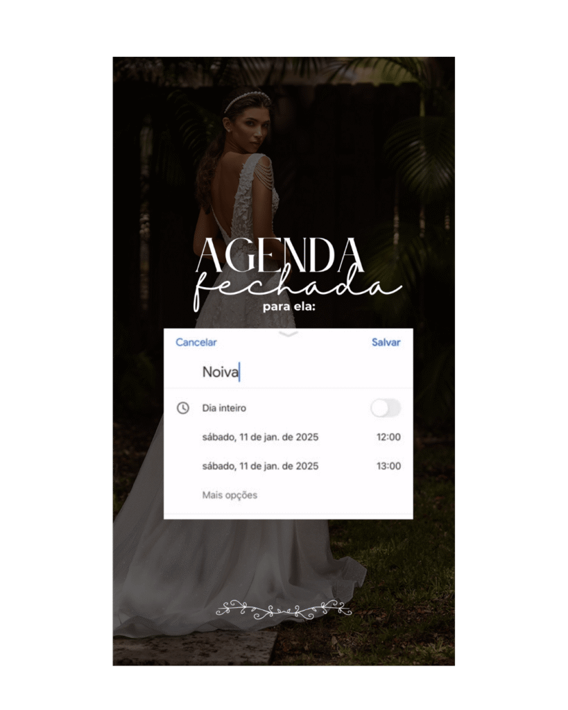 Story para você publicar quando fechar a data de uma noiva. É importante a postagem para gerar escassez e acelerar o processo de fechamento de outras noivas.
