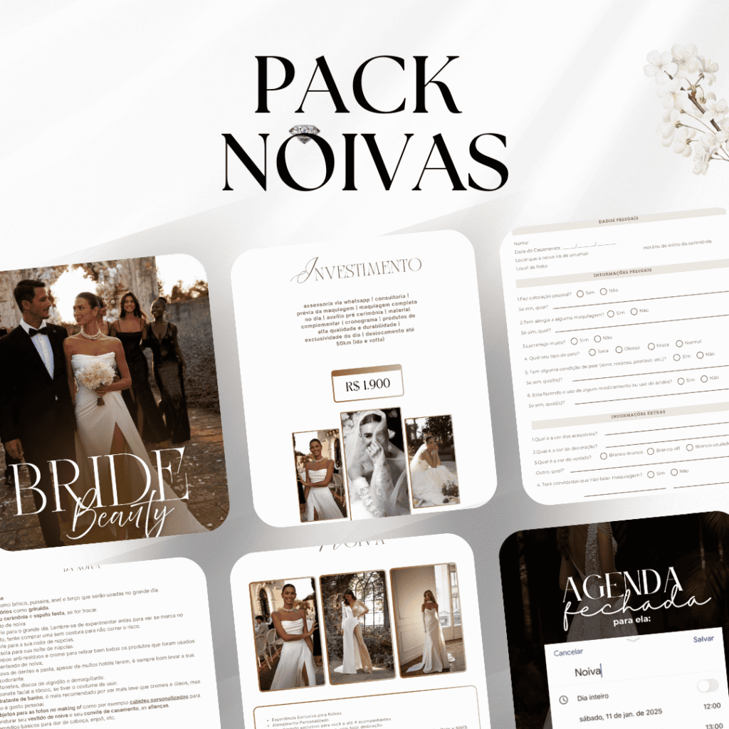 Para Empreendedores/Profissionais que fazem atendimento de noivas, e entendem a necessidade de ter uma apresentação dos seus serviços de forma profissional para se destacar e atrair mais clientes.